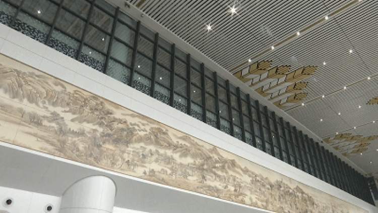 走进里面,首先映入眼帘的是一副水墨长卷!该长卷为常熟清代画家周鲲所作的《升平万国图》,描绘的是清乾隆年间常熟湖山胜迹、街市和社会风情,南门坛上、陈家市、书院弄、虞山十八景中的昆承双塔等地标历历在目。是不是感觉特别有文化?