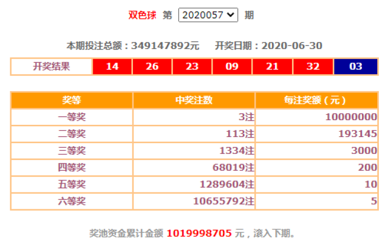 上海彩民们再一次与双色球一等奖无缘!6月30日晚,中国福利彩票双色球游戏第2020057期又开出了3注一等奖,分别落入安徽、广东和宁夏,单注奖金高达1000万元!好在,上海也并非颗粒无收,揽入了5注二等奖。