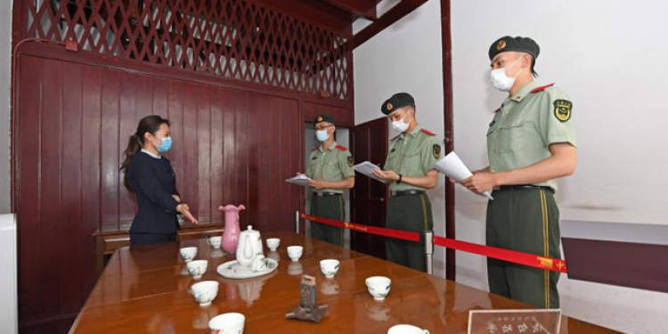 “我们还能为纪念馆做点什么?”一大会址开馆的当天,所有援建官兵经过讨论,郑重向中队和一大会址递交了当义务讲解员的申请。