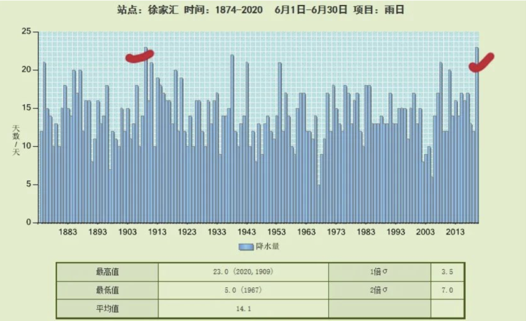 之所以还有个“之一”,是因为有一年的6月,也出现过23天之多的雨日,但那居然是发生在110年前的1909年……