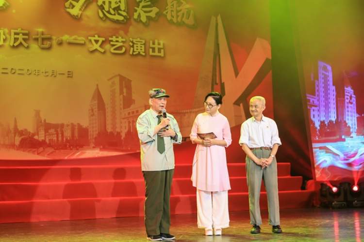 演出中,两位老党员代表——黄浦区政协原副主席王宏杰、南京路上好八连首任指导员王经文也来到现场向青年党员提出了殷切希望。
