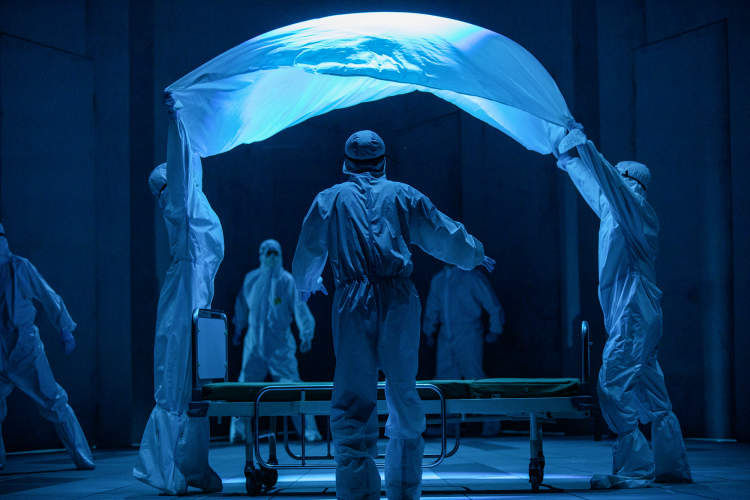 7月1日晚,由上海话剧艺术中心制作、上海交通大学医学院附属瑞金医院联合出品的抗疫音乐剧《那年那时那座城》拉开帷幕,就是取材于瑞金医院等上海援鄂医疗队员们的真实抗疫经历,把医疗队员们的英勇无畏、攻坚克难以及革命的乐观主义精神经艺术加工生动再现。