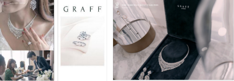 首先映入眼帘的是作为高级珠宝的翘楚——格拉夫GRAFF在现场展出华贵的婚嫁珠宝系列,展示展出婚嫁珠宝系列Laurence Graff Signature 婚戒,以及多款工艺精湛﹑立体和全面的华美珠宝。创始人格拉夫深明订婚戒指和婚戒是不渝爱情的象征,代表永恒的承诺和人生的新篇章,而钻石更是代表不朽的真爱。
