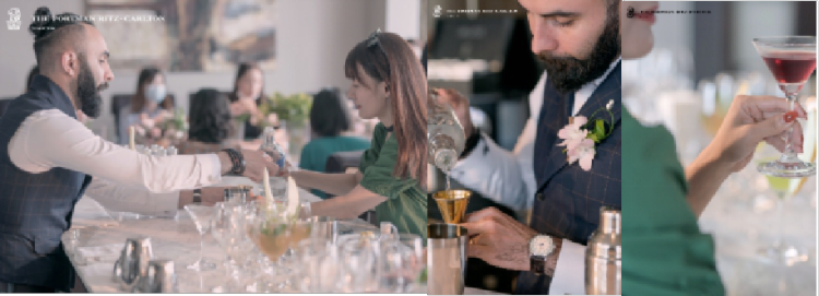与常规沙龙不同的是,现场有调酒环节,由丽嘉阁酒吧经理哈图诺Tural Hasanov制作主题特调鸡尾酒,周到君自己动手,在专业的指导下将不同酒类混合在一起,周到君第一次品尝到自己制作的鸡尾酒,也领略了一番调酒的魅力。