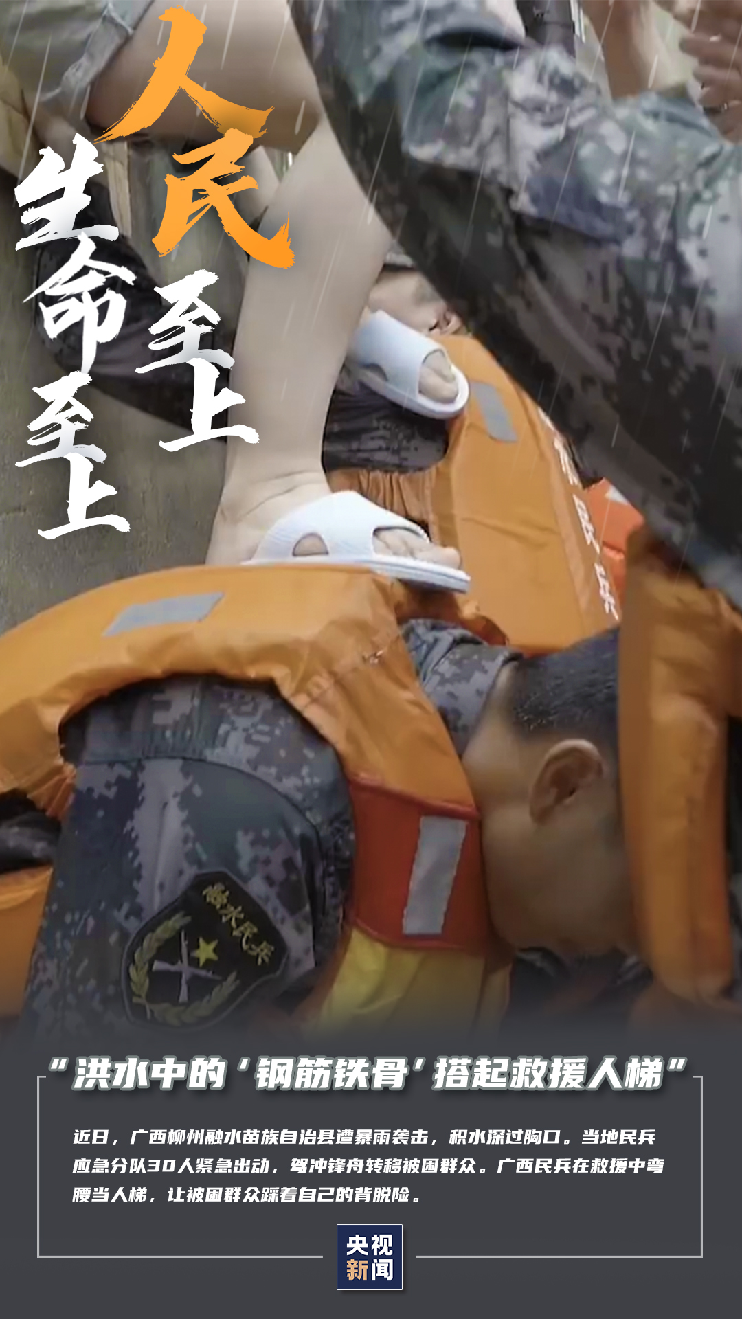 向水而行!这些在洪流中搭建起的“生命通道”守护你我 2020-7-15 来源:央视新闻客户端 当前 我国汛情形势非常严峻 截至7月12日12时 洪涝已致全国27省3789万人次受灾 “人民至上、生命至上” 集结、救援…… 各地力量毅然冲上前线 在洪流中以血肉之躯 搭建起抗洪救灾的“生命通道” 人民至上,生命至上 各地力量汇聚在一起 守护家园 共筑成防汛抗洪坚不可摧的屏障 监制丨唐怡 制片人丨郑弘 赵新宇 武慧锋 策划丨张庆 视觉丨邢程 编辑丨杨晓晗 赞一个 (0)