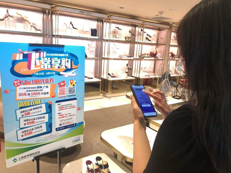 广州、深圳两个航线的出港和进港旅客,可在虹桥机场通过手机扫描活动海报二维码,进入微信小程序领取50元抵100元的购物代金券,每人每周限领1张,可在上述近100家商户使用抵扣消费,使用期限至2020年9月30日。