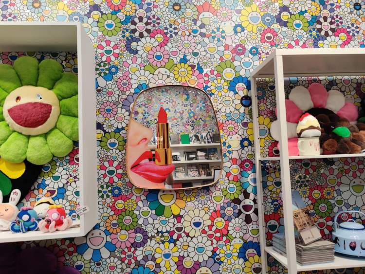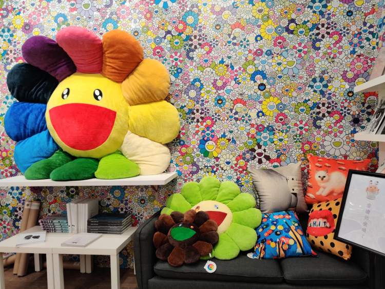 不过,画廊也在尝试着拥抱“大收藏家”以外的人。在贝浩登,逛完展后还可以逛“卡哇伊商店”。小小的店面犹如“太阳花乐园”,墙面是太阳花,靠垫是大大小小的太阳花,还有种类繁多的太阳花版画,几乎可以改名“村上隆艺术品商店”!