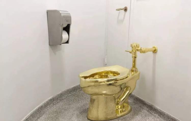 ■莫瑞吉奥·卡特兰在MoMa展出的“黄金马桶” 图片:网络