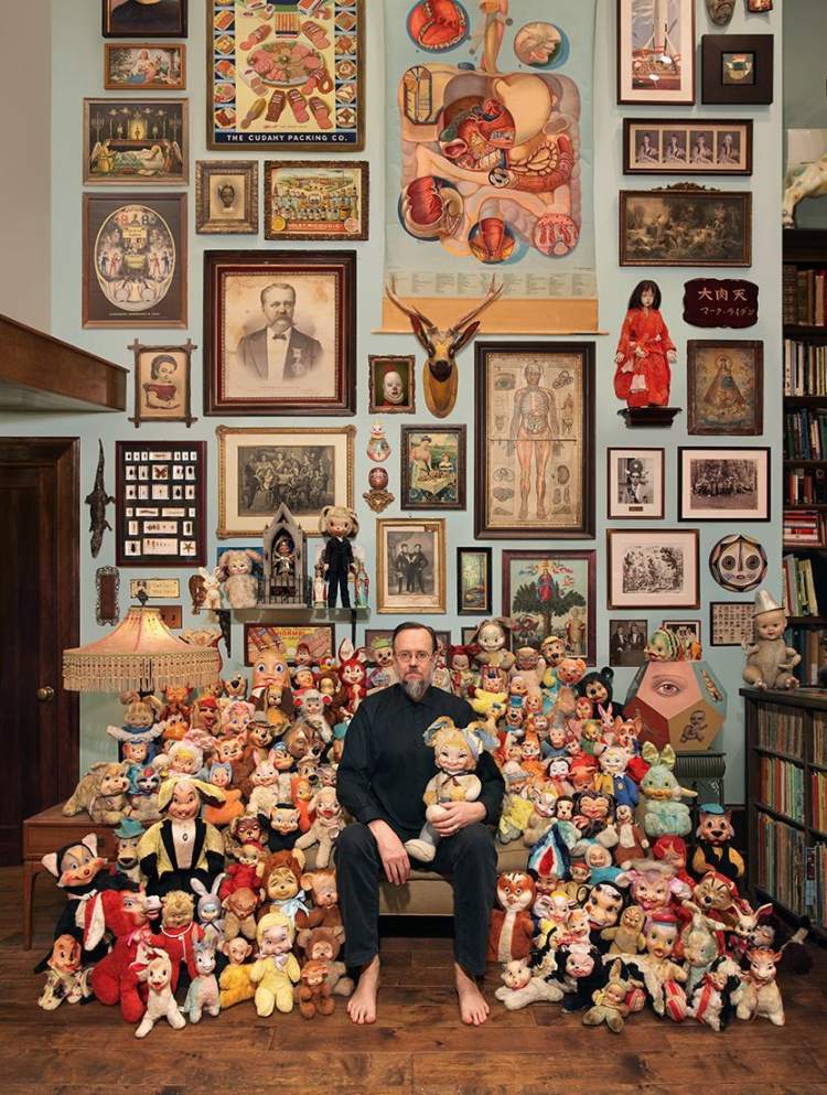 ■艺术家马克·莱登与他的橡胶脸毛绒玩具收藏 图片:网络