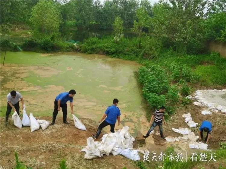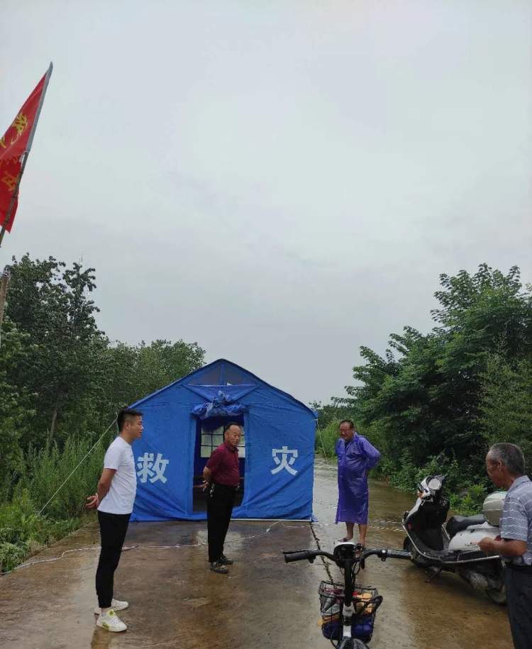 △ 舒明智(左二)生前在防汛一线。7月12日