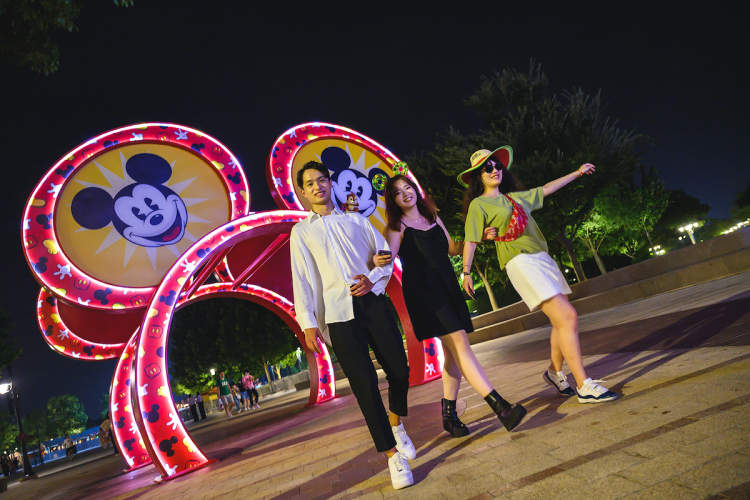 入夜,迪士尼小镇的灯光逐渐点亮,网红美食、乐队派对、互动小游戏、民俗手工艺……一个个小摊陆续登场,今年夏季,迪士尼小镇首开周末夜市,助推夜经济,也让市民游客有更多夏夜好去处。