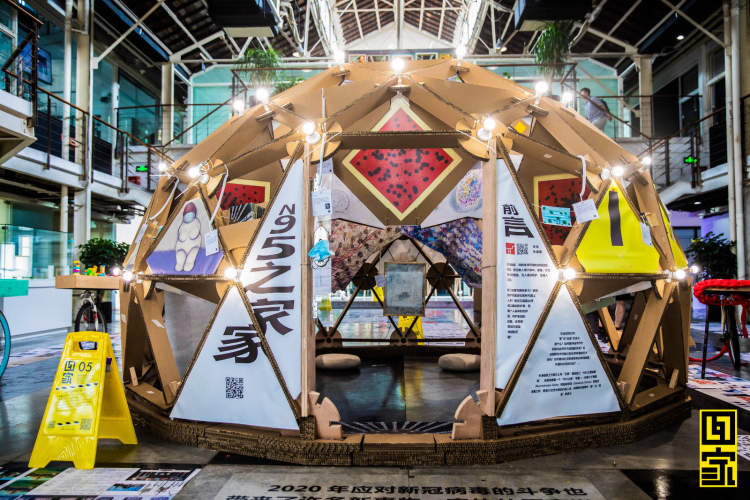 “回家”展览联合主办方现代传播集团的加入令线下首展落户上海。策展团队和现代传播集团的策展团队共同发力,冲破种种限制,首次把艺术展览搬出“白盒子”的封闭空间,因地制宜,利用园区内的街道(通道)、餐厅、书店、活动空间和建筑物转角,甚至公共卫生间、垃圾站、楼梯底等地方都成为激发参展人灵感与智慧的展览空间。最终,“回家”展览让誌屋及8号桥创意园区(一期)变身为“无界展厅”。