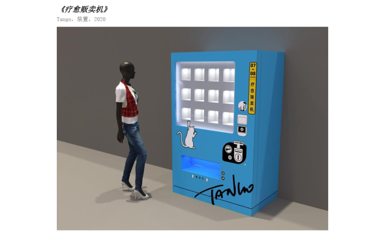 疫情将生活摁下暂停键,这突如其来的插曲影响了每个人的生活。空间与时间的概念,也发生了微妙的改变。对有的人来说似乎“困”在了家里,无论办公还是日常起居都在同样的空间;对有的人来说,“家”则是一时回不去的地方。结合此次展览主旨,漫画家 Tango 决定打造一个“疗愈贩卖机”的装置,用以陈列他从日常事物中提取的创意,并邀请手工艺人将他的漫画实物化,以艺术作品替代商品展示于贩卖机中。