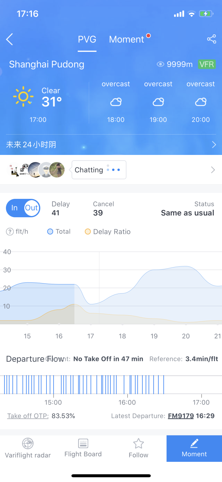 飞常准航班信息显示,目前,浦东机场没有航班起降,最后进港航班为CA196(16:28进港),最后出港航班为FM9179(16:29出港)。