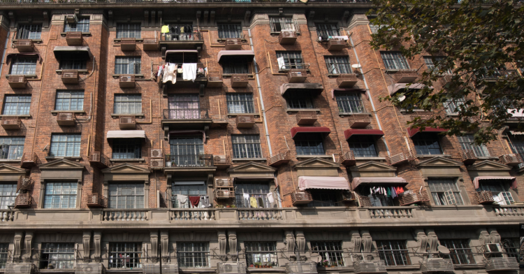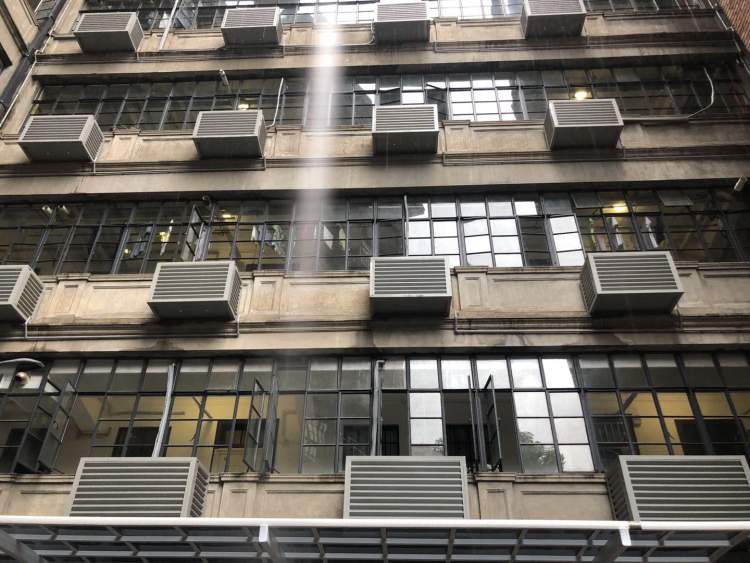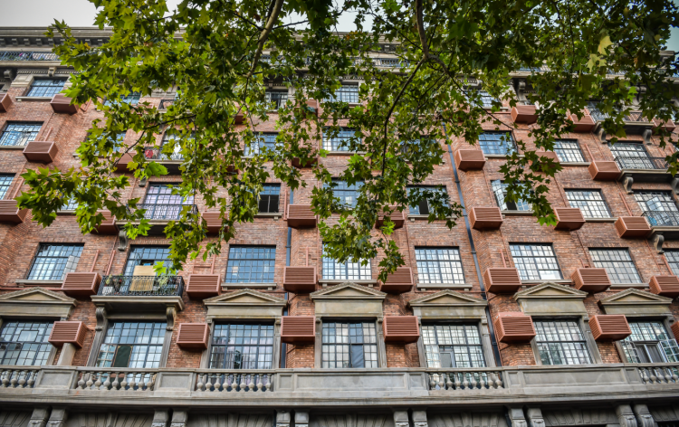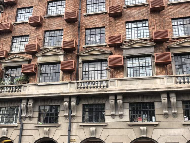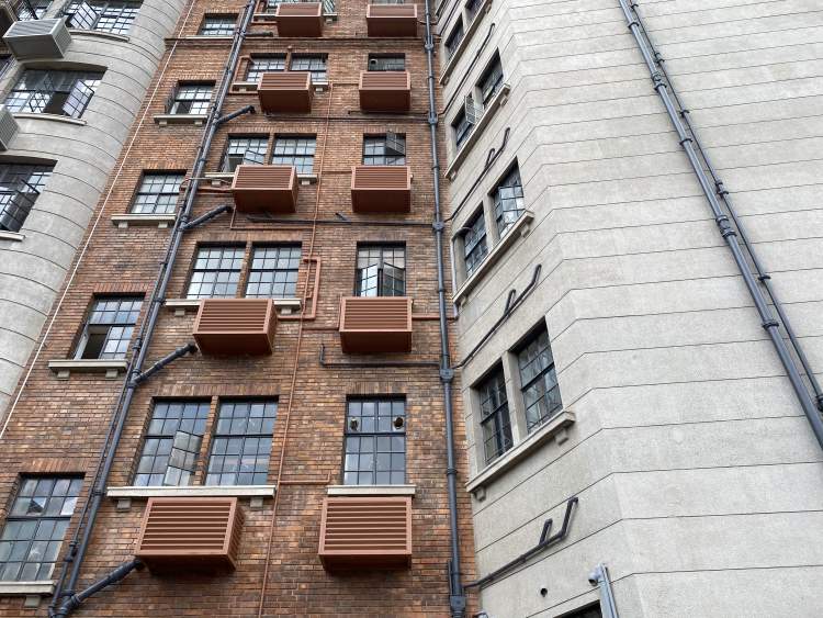 “武康大楼外有漂亮的阳台,二三层之间有精致的‘牛腿’装饰,为了让淮海路一侧的外立面更整洁,一些住户要将装在淮海路一侧的空调给移到内天井。”