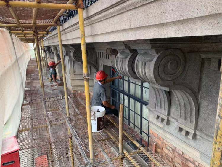 “可能很多人都觉得武康大楼和浪漫的法式风情关系密切,但事实上,英国才是浪漫主义的起源。相反,法国作为新古典主义的起源地,建筑风格追求规整,习惯使用大量石材,即便预算不够无法大量使用石材,也会采用水刷石技术来仿造石头的质地和外观,从而达到视觉上的规整。” 伍江说,这也是武康大楼为何为出现大面积水刷石的原因之一。