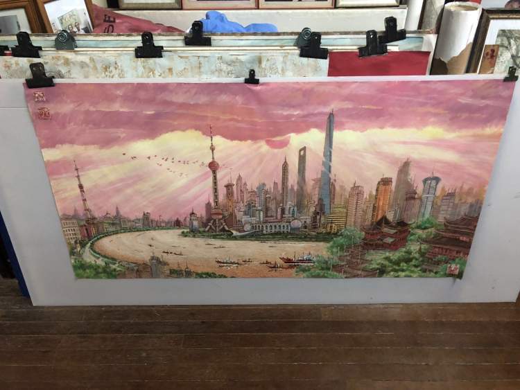 ■秦忠明的画室就在淮海路一侧,墙角一隅堆满了他的作品。