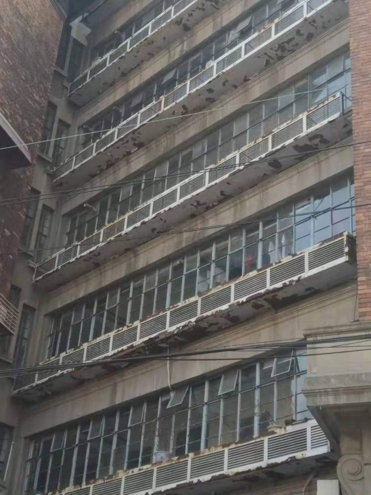 ■内天井原本的钢窗已经十分破旧、空调外机架腐蚀严重。