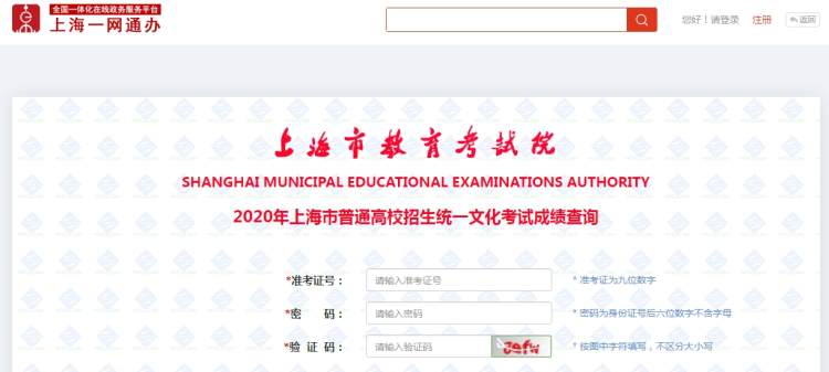 考生可登录上海市教育考试院“上海招考热线”网站“成绩查询”栏目输入本人9位高考准考证号和密码查询统一文化考试成绩。