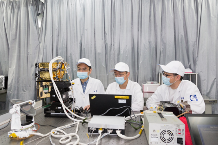 火星表面成分探测仪鉴定件调试(从左到右舒嵘、金焱飞、徐卫明)
