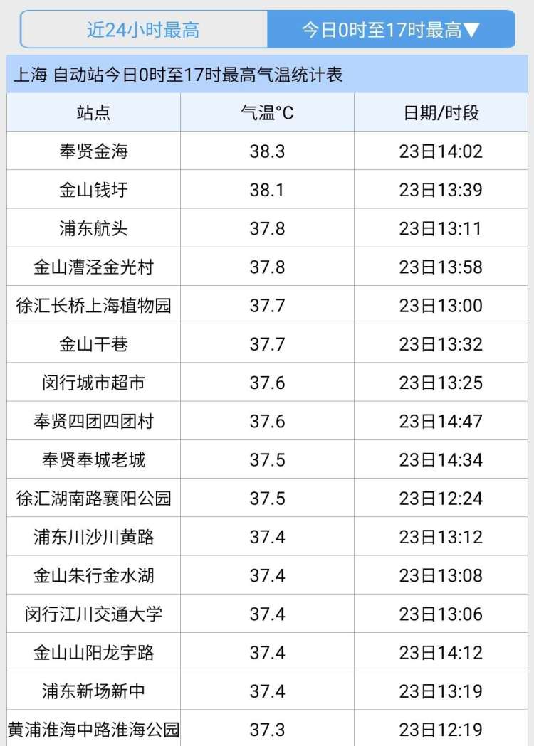 最终,中心城区徐家汇站的最高气温定格在了36.8℃,小胜此前7月12日的36.7℃,成功担当“今夏以来最热一天”。
