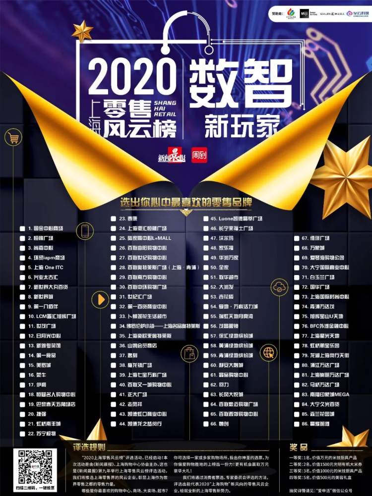 我们将通过消费者票选、专家委员会评选的方法,评选出能代表2020上海购物新风尚的零售风云企业,绘就全新的上海零售新势力。
