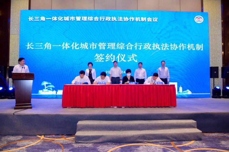 上海市黄浦区城市管理行政局、南京市城市管理局、杭州市综合行政执法局、合肥市城市管理局作为四个地方代表,签署了《上海、江苏、浙江、安徽一市三省地级市城市管理综合行政执法结对共建协议》,至此上海市16个区城管执法局与苏、浙、皖三省43个地级市、开发区城管执法部门共同签署结对共建协议。