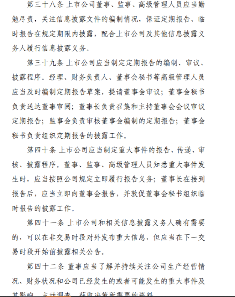 此次征求意见稿第四十一条为:“上市公司和相关信息披露义务人确有需要的,可以在非交易时段对外发布重大信息,但应当在下一交易时段开始前披露相关公告。”