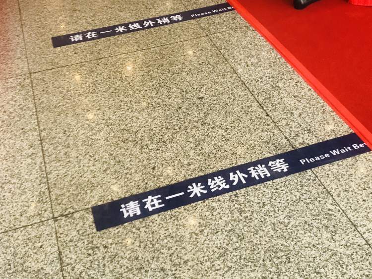 观众在影城设置的入口排队入场,期间须保持一米以上的社交距离,佩戴口罩。