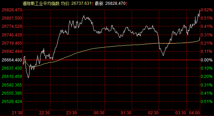 来看隔夜美股收盘的具体数据。至收盘,道琼斯工业平均指数上涨164.07点,涨幅0.62%,收报26828点;纳斯达克综合指数上涨38.37点,涨幅0.35%,收报10941点;标普500指数上涨11.90点,涨幅0.36%,收报3307点。