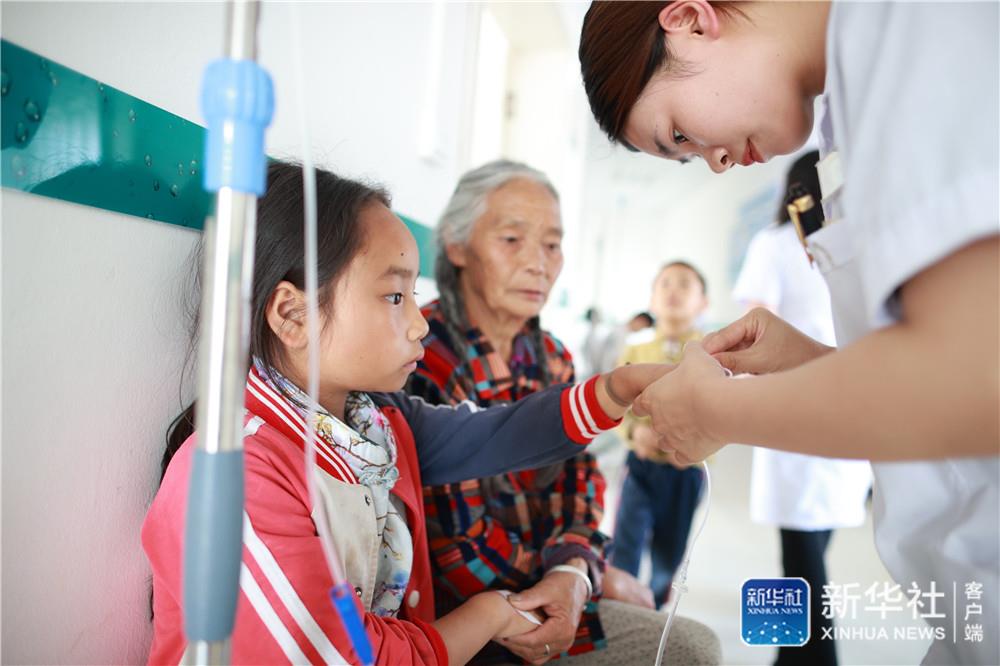 ↑搬迁群众在柏杨林易地扶贫搬迁安置点卫生院内看病(8月3日摄)。刘续 摄