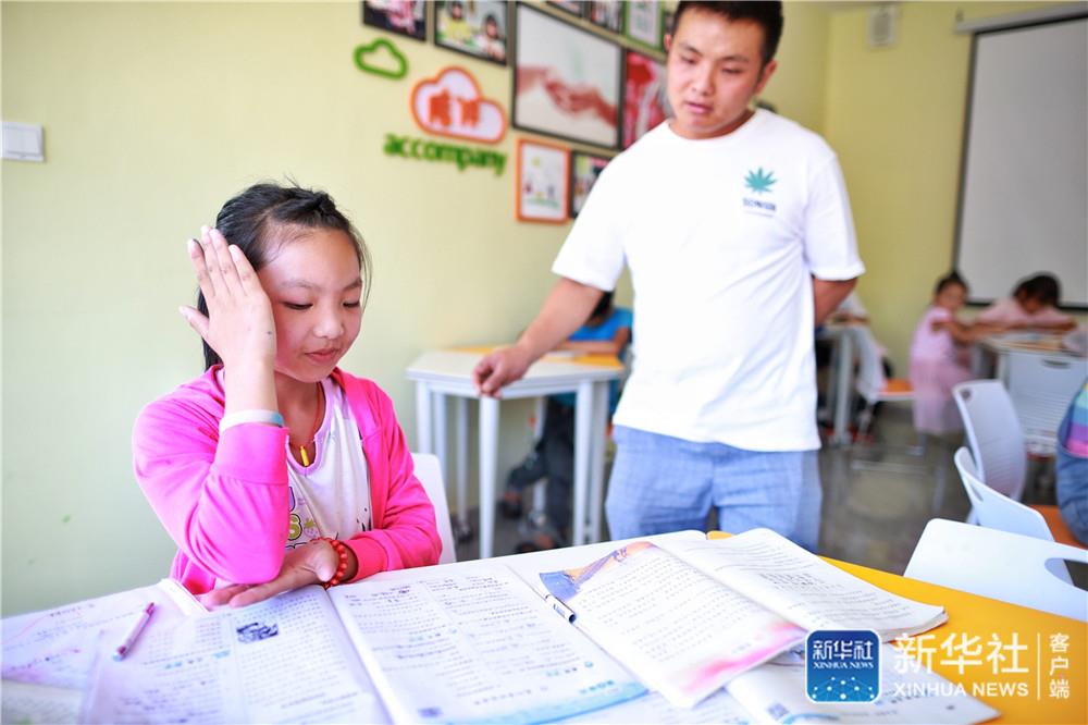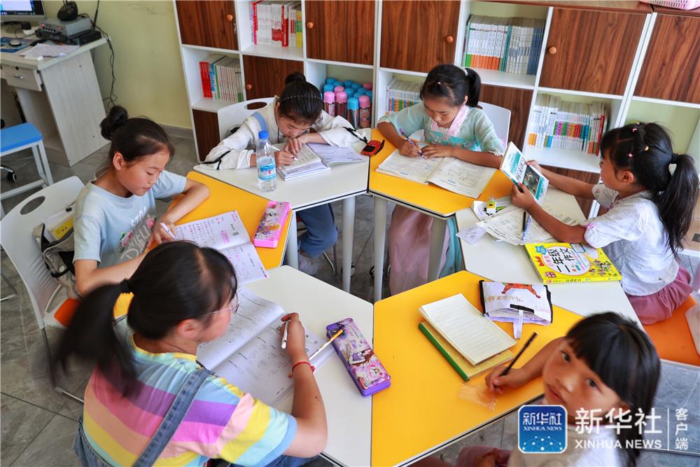 ↑小朋友在柏杨林易地扶贫搬迁安置点长幼日间托养照料中心内学习(8月3日摄)。刘续 摄