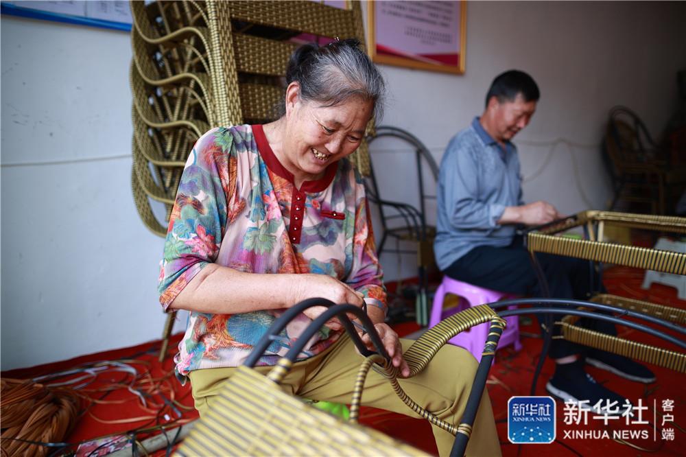 ↑搬迁群众在柏杨林易地扶贫搬迁安置点就业扶贫车间内工作(8月3日摄)。刘续 摄