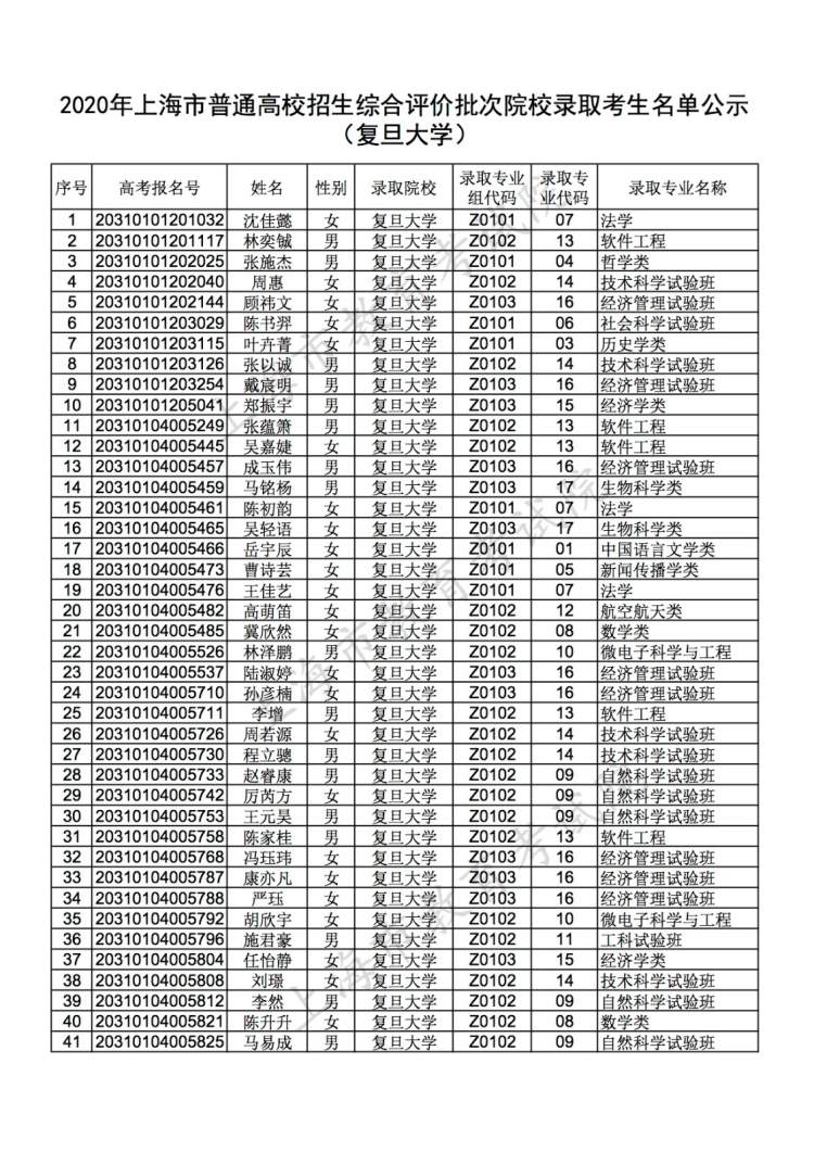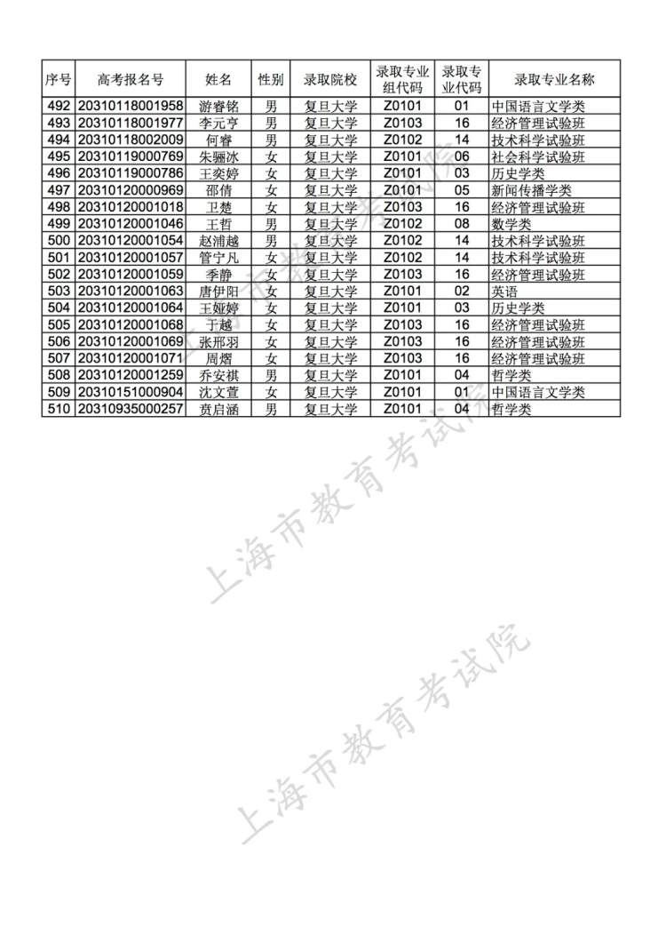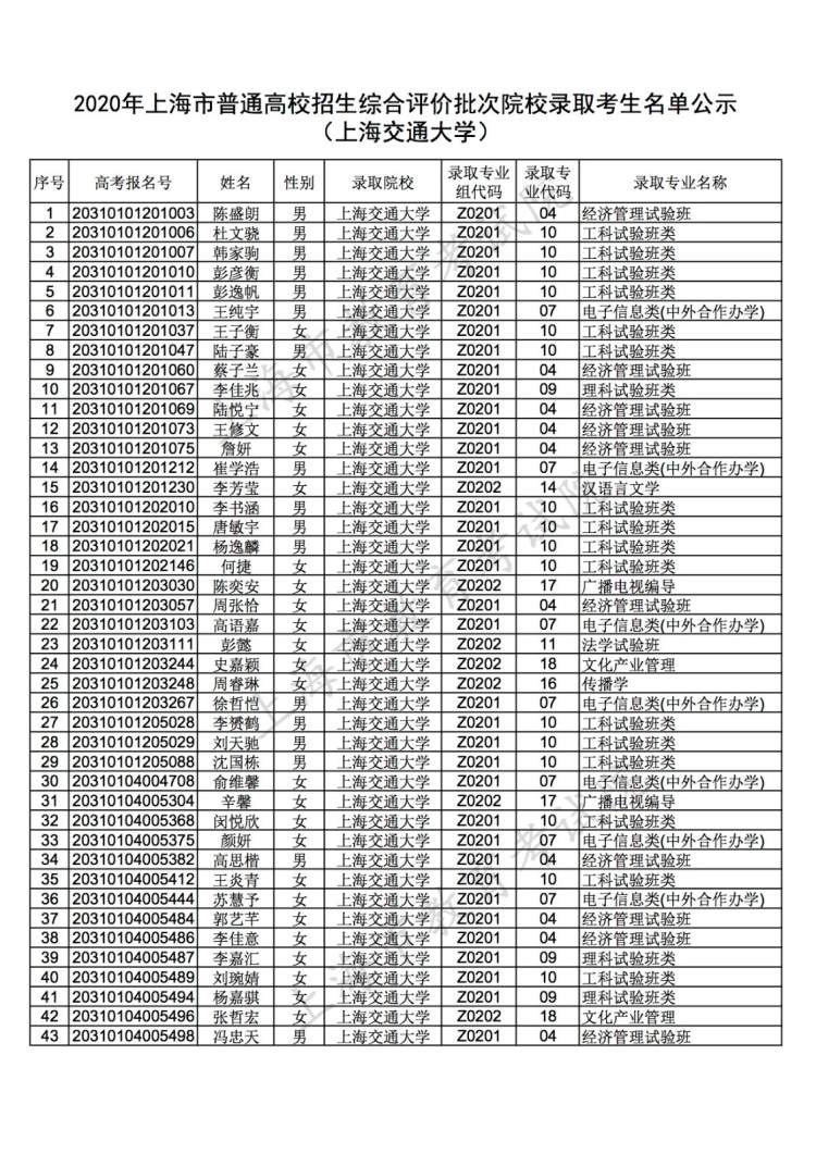 继昨天已公布名单的7所高校外,今天,复旦大学、上海交通大学、同济大学、华东理工大学也已公布名单。考生可登录特殊类型招生报名平台查询结果。