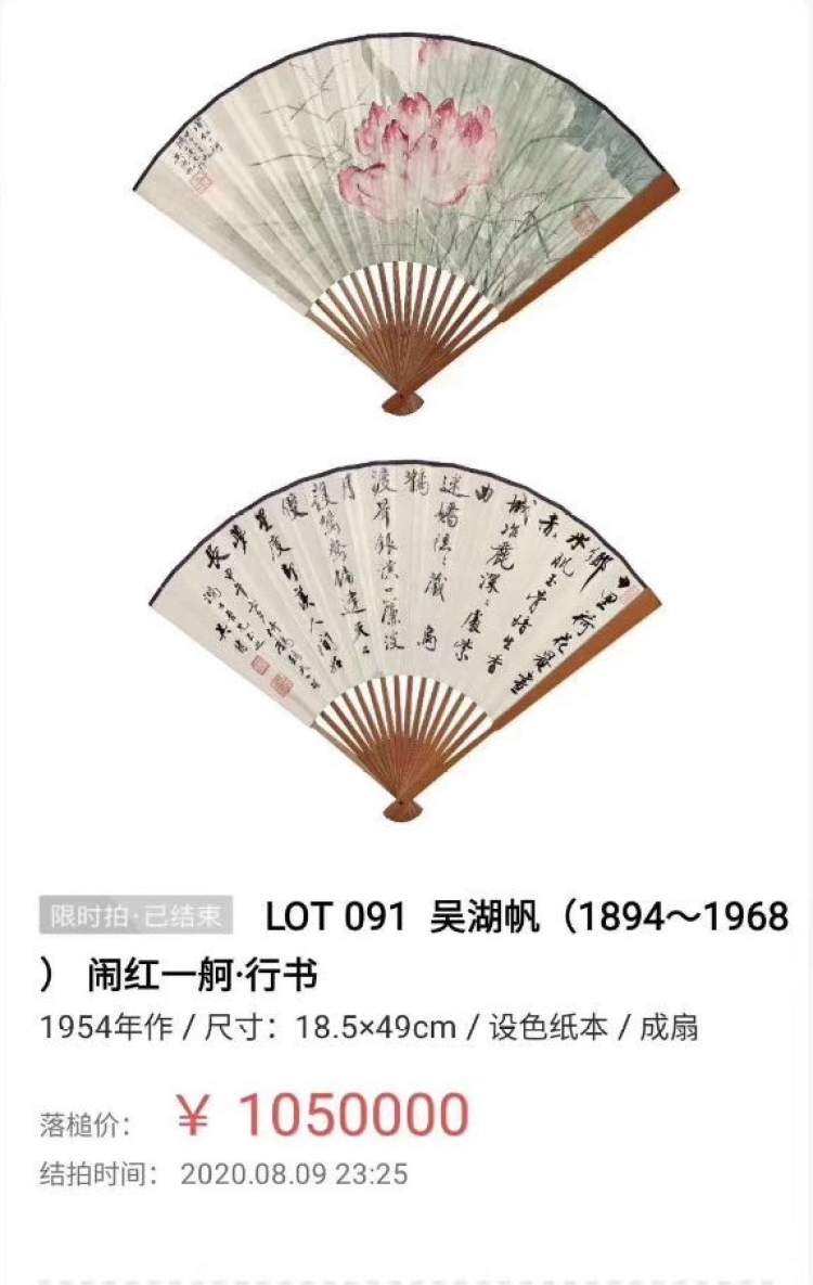 有人说今年迟来的春季艺术品拍卖非常火爆,堪称“报复性行情”,而8月9日晚上的两场拍卖会又再次佐证了上述说法——西泠春拍历代名砚暨古墨专场上,一方清代金农、康焘铭稽留山房画梅第二砚以1058万元成交,创文人砚拍卖纪录;同一个晚上,嘉禾网拍第21期“清凉一夏——名家成扇作品专场”上,吴湖帆一把名为《闹红一舸·行书》的成扇拍出105万元。