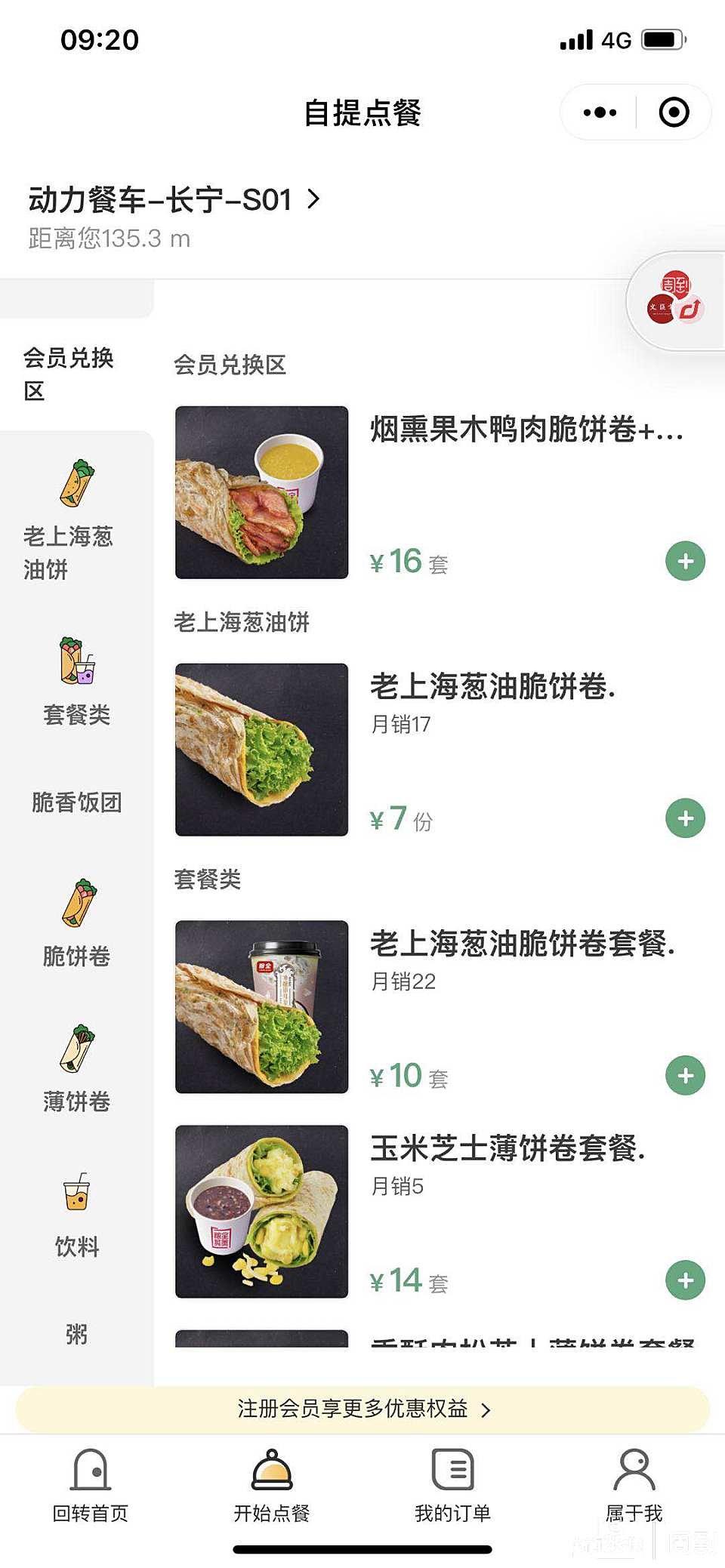 顾客扫描二维码进入小程序后即可下单,记者注意到,目前这一餐车主要卷饼、饭团以及粥、饮料等。7块钱就能买到“老上海葱油脆饼卷”,“金枪鱼辣白菜脆香饭团”售价6元,若是选择搭配了冰糖银耳羹、小米粥、牛奶等的套餐,价格也就在8元至18元上下。
