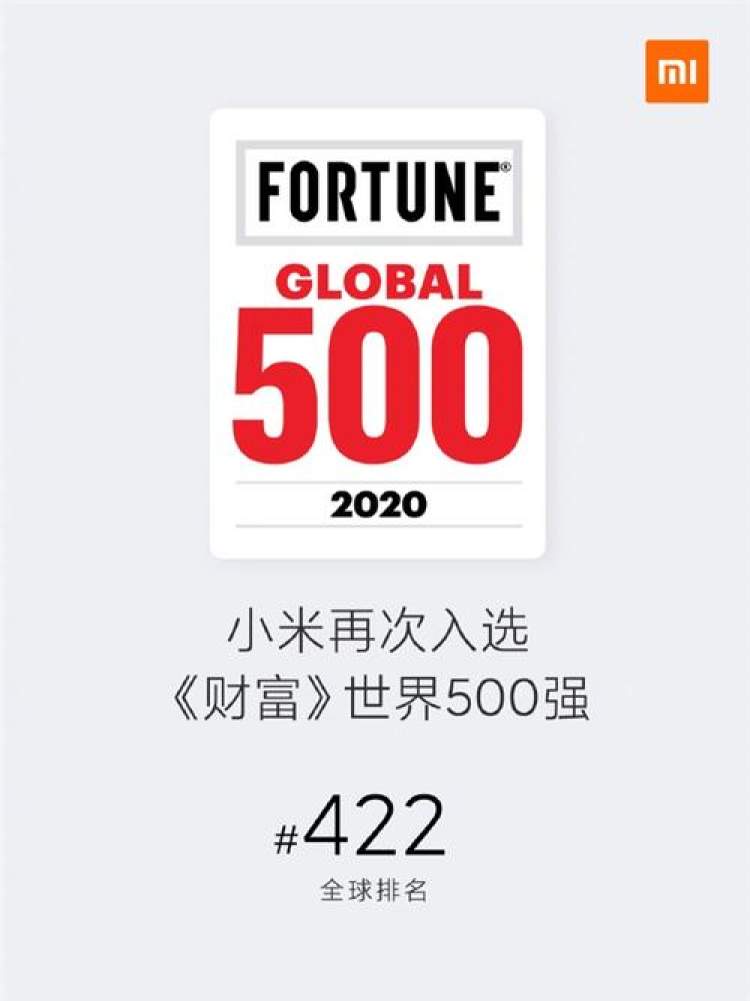 8月10日,《财富》杂志发布2020年世界500强榜单,小米集团排名第422位。这是2019年首次上榜后,小米集团再次上榜,较去年大幅提升了46位 (2019排名468位)。
