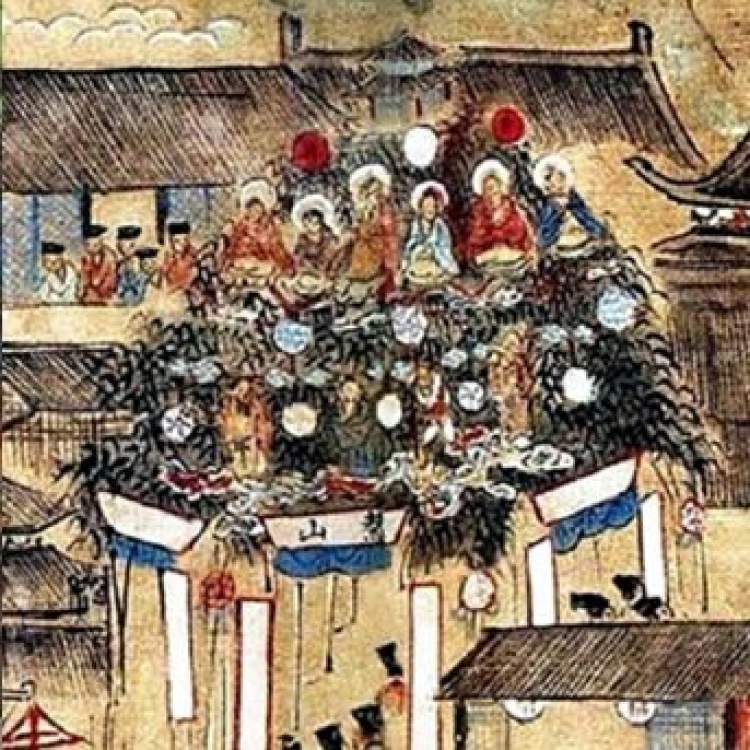 最好玩的是民俗表演“鳌山”。演出者像叠罗汉一样居于高处,下方是用木材和彩灯搭起来的小山,看起来就像大龟一样。这是元宵节特别的活动,由此可知,画中人正在过元宵节。
