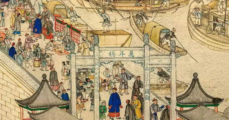 说到中国古代的画作,我们想到的往往是山水画和花鸟画。在明清之时,有越来越多的风俗画以长卷的形式面世,以一种类似于通俗小说的形式与今人形成共鸣。正如诗人西川在《唐诗的读法》提出的观点: