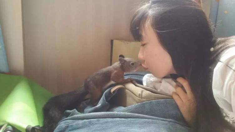 我也是个动物爱好者,关注自然,做动物救助,家里的成员是一只独腿灰喜鹊、一只少了一根脚趾头的松鼠,还有一只从小领养的三花猫。最近又增加了新成员,一只被人遗弃在大兴的南方赤腹松鼠,他那天从我家跑出去玩儿了一个下午,天黑了他很害怕,又敲窗户回来了。