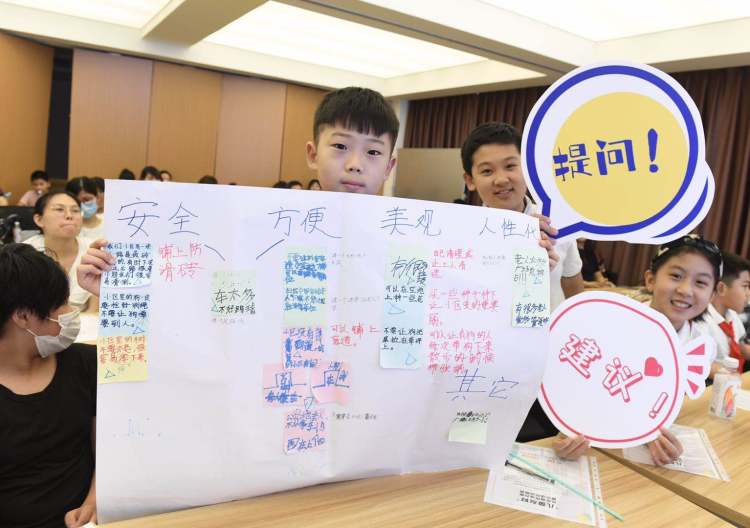 来自长宁区程家桥街道的孩子们热情高涨,程桥二村和其他小区的3个小组分别汇报他们在小区调研中发现的问题,并且归类为:安全、美观、方便、人性化。