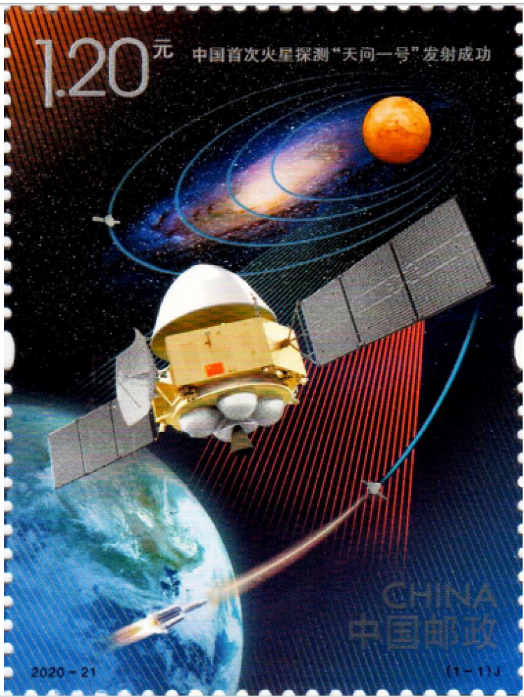 ○中国首次火星探测“天问一号”发射成功,1.20元,33×44毫米,见下图