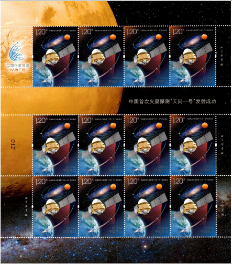 《中国首次火星探测“天问一号”发射成功》纪念邮票自发行之日起,在全国指定邮政网点、集邮网厅(https://jiyou.11185.cn)、中国邮政手机客户端和中国邮政微邮局集邮微信商城出售,出售期限6个月。