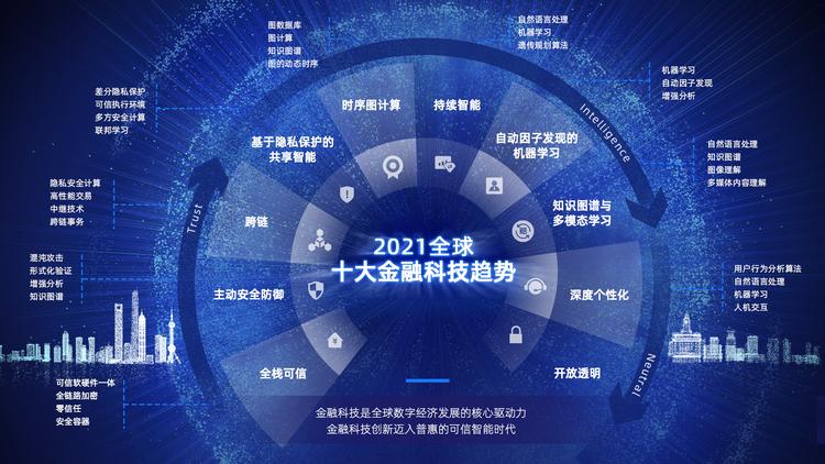 外滩大会还发布了《2021全球10大金融科技趋势》,从可信、智能和普惠三个维度预测了金融科技未来的走势。