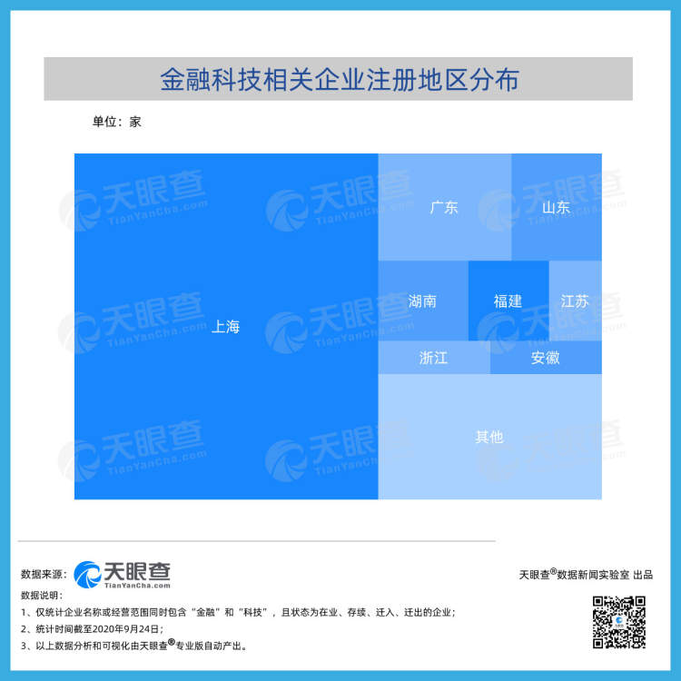 截至2020年9月24日,以工商登记为准,天眼查专业版数据显示,我国今年已新增超2万家金融科技相关企业。其中,上海市新增超8,300家,占比超4成。