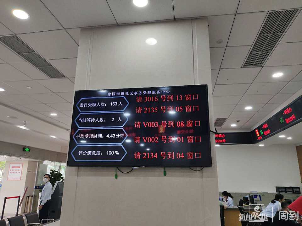 从进入中心开始,一大波信息化服务就扑面而来。不用提交身份证件,打开手机亮出随申码绿码就能取号。入座等待区,电子显示屏实时更新当前受理人数、等待受理人数以及平均受理时间等信息,让居民对于等待时间有充分的预估。