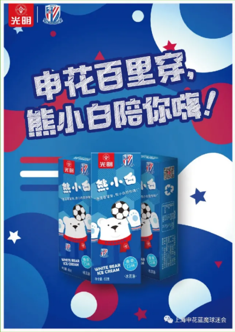 例如光明限定冷饮快闪店里就将带来申花联名熊小白冰淇淋的线下首发,再加上人们熟悉的白雪中砖、娃娃雪糕等等,可以让大家一同感受老字号品牌的温度、情怀和创新魅力。