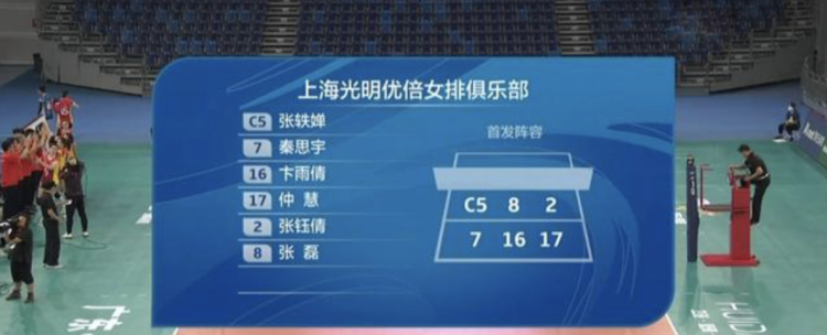 作为联赛冠亚军,本场比赛,上海女排与天津女排均派出了最强阵容应战。代表上海女排首发的是主攻仲慧、张轶婵,副攻秦思宇、张钰倩,接应张磊,二传卞雨倩,自由人王唯漪。
