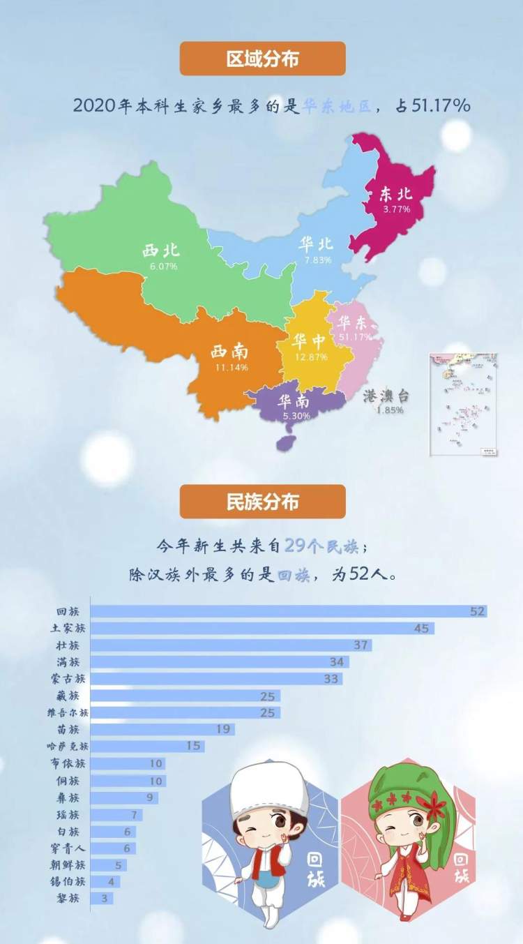 上海交大2020本科新生大数据来了~11位同学生日与国同庆! 董川峰 2020-9-25 来源:周到上海 上海交通大学2020级本科新生大数据出炉了! 今年共有4319名本科生新同学加入交大,其中男生2813人,女生1506人,男女比为1.87。 船舶海洋与建筑工程学院男生占比最大,为86.67%;人文学院,女生比最大为95.24%,安泰经济与管理学院男女比例最和谐为1:1.14。 新生出生日期为10月1日的共有11人,他们每年生日与国同庆。 来源:周到上海 作者:董川峰 赞一个 (0)