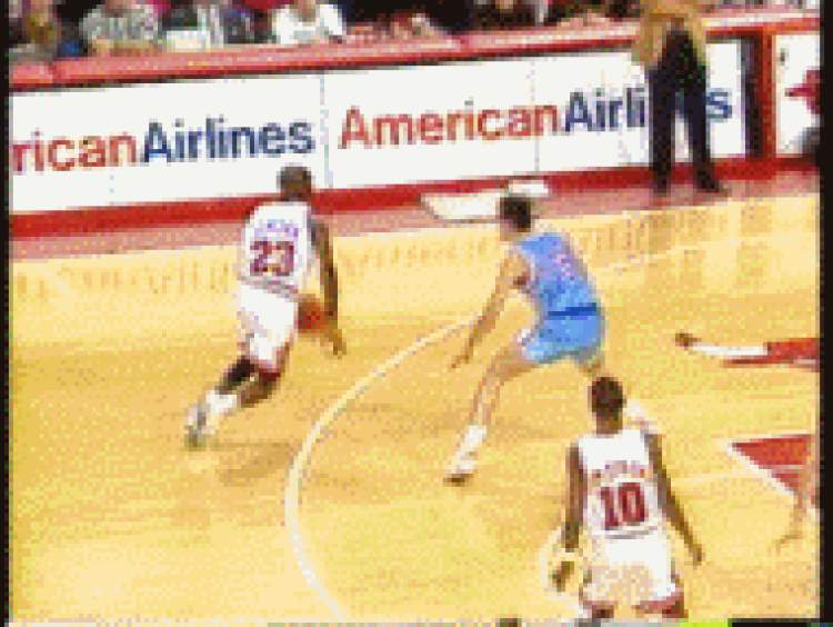 这一幕,可能会唤醒一些资深球迷的看球记忆,篮球之神迈克尔·乔丹也曾经上演过这样的神级拉杆。